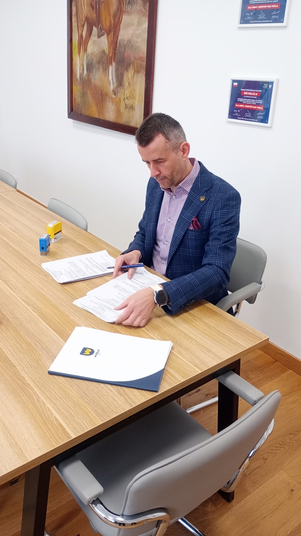 Dziś Burmistrz Józefowa nad Wisłą, Paweł Grabek, podpisał z wyłonionymi wykonawcami kolejne umowy na przebudowę dróg gminnych w miejscowościach Ugory i Bór.