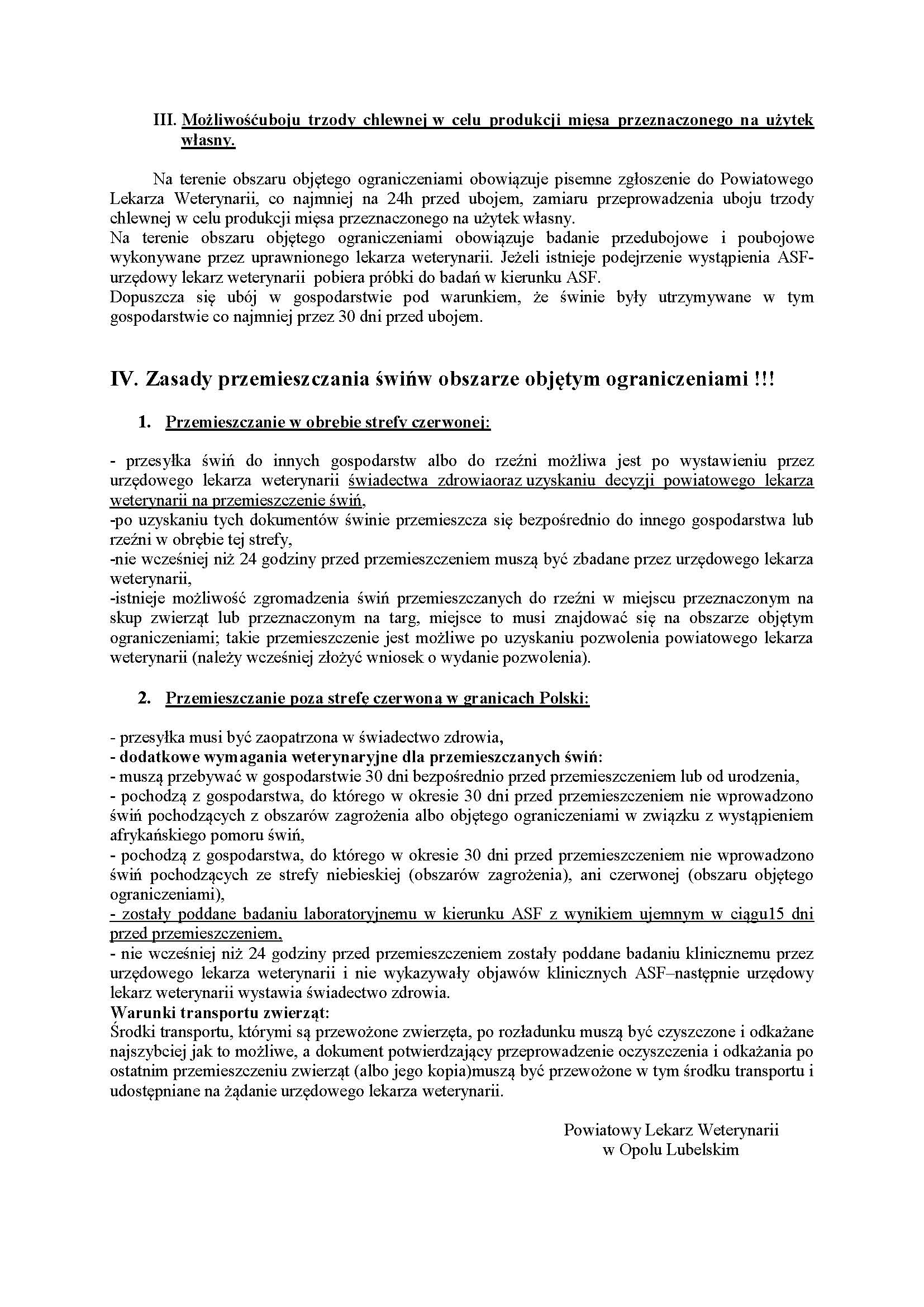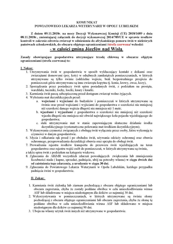 Komunikat Powiatowego Lekarza Weterynarii w Opolu Lubelskim