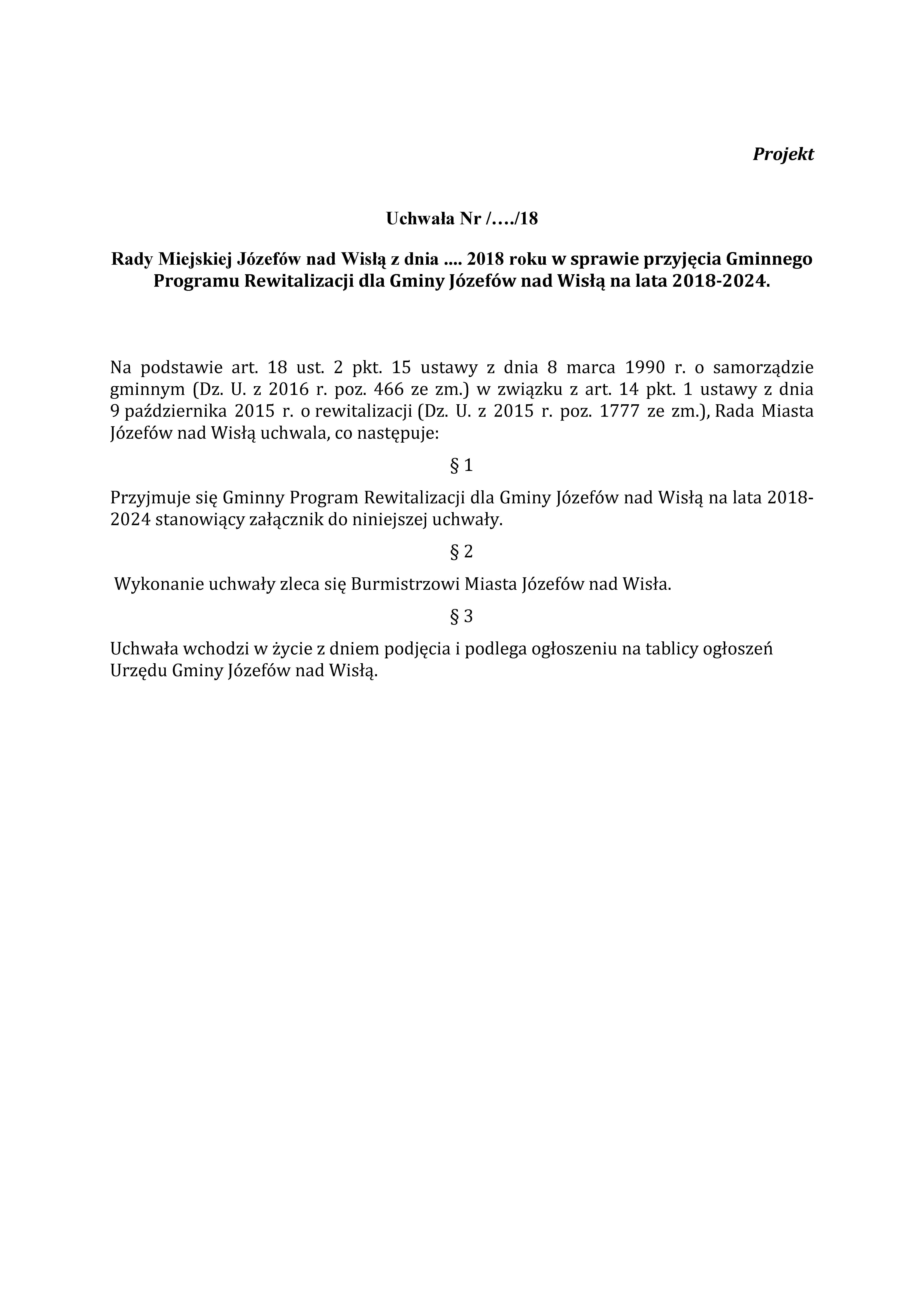 Projekt – Gminny Program Rewitalizacji Gminy Józefów nad Wisłą na lata 2018-2024 – po spotkaniach