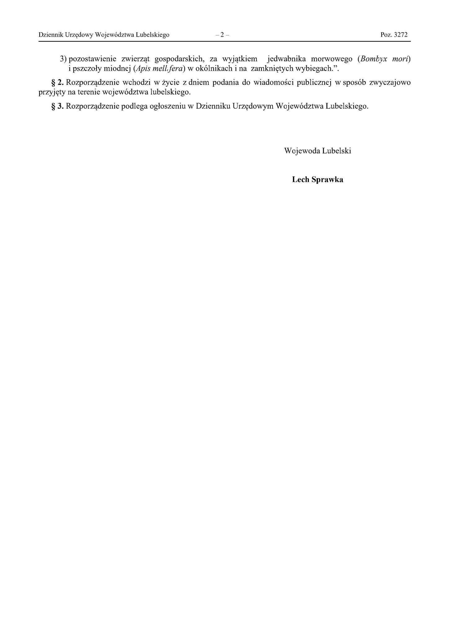 3) pozostawienie zwierząt gospodarskich, za wyjątkiem jedwabnika morwowego i pszczoły miodnej w okólnikach i na zamkniętych wybiegach.