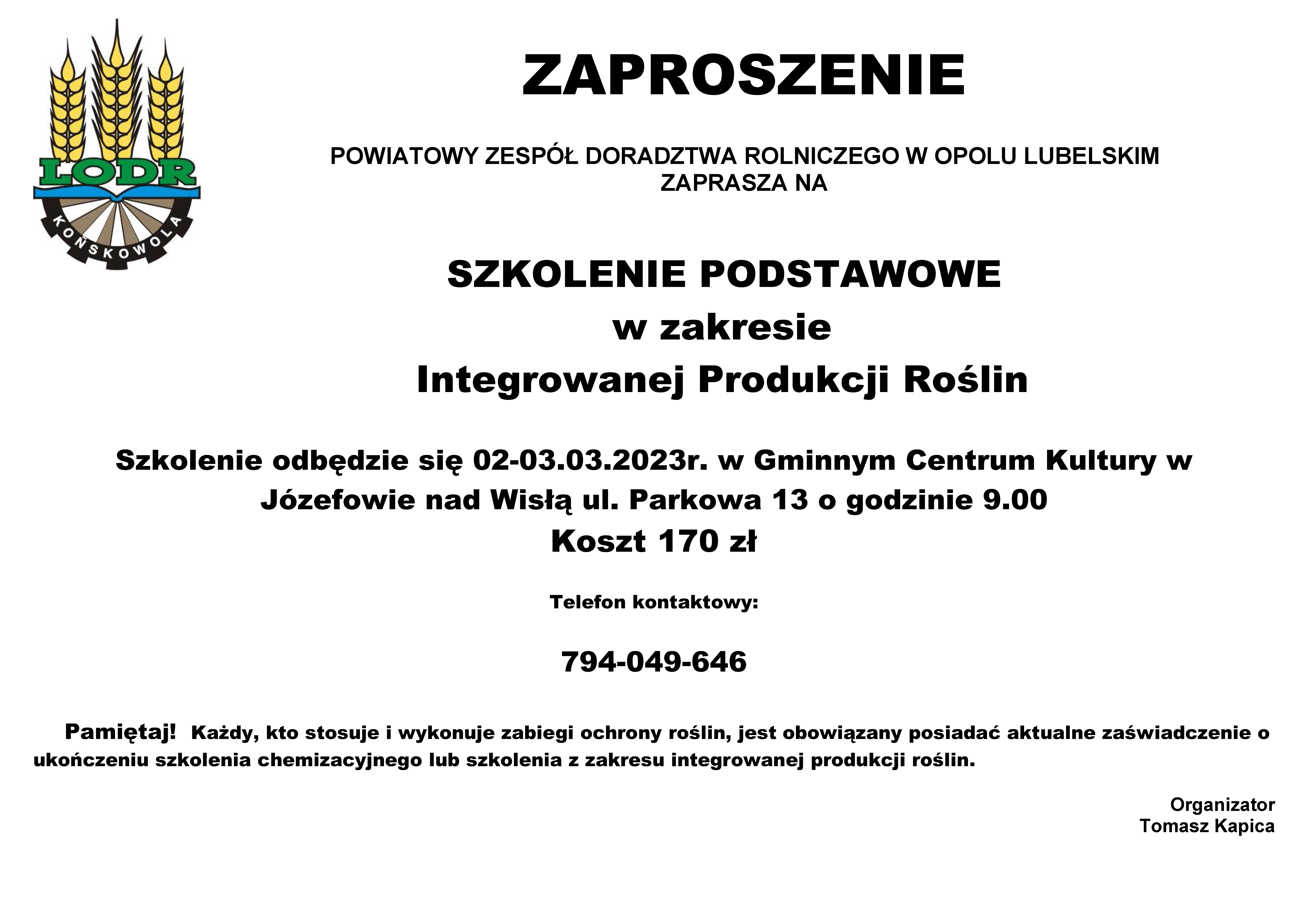 Jesteś tutaj: Strona główna / Szkolenie podstawowe w zakresie integrowanej produkcji roślin