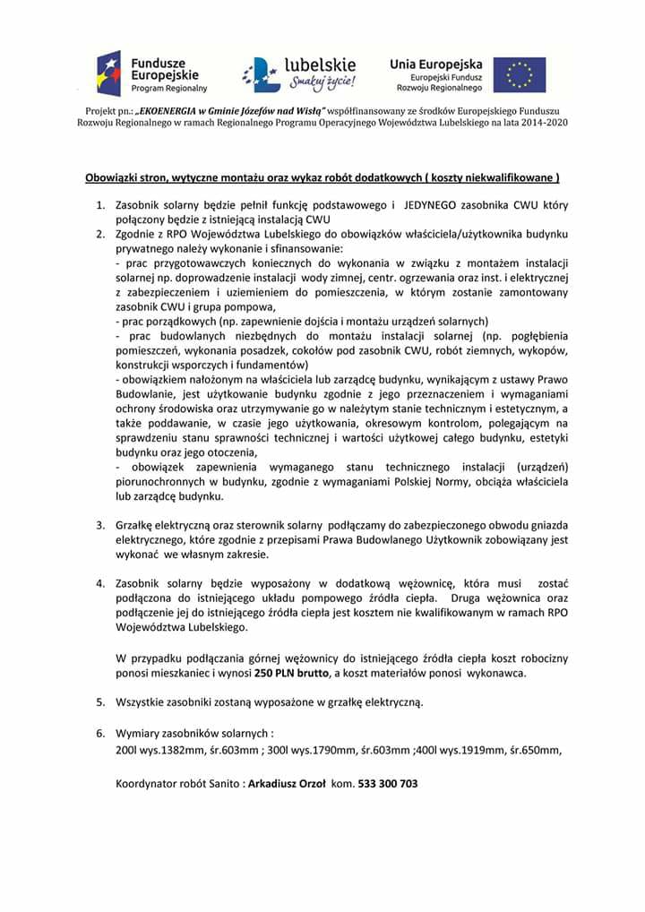 Urząd Miasta w Józefowie nad Wisłą informuje, iż od 6 marca 2018 r. rozpoczynamy realizację projektu pn.: „EKOENERGIA w Gminie Józefów nad Wisłą”. Montaż instalacji solarnej rozpocznie się w kolejności od osób, które dokonają wpłaty II raty w kwocie: