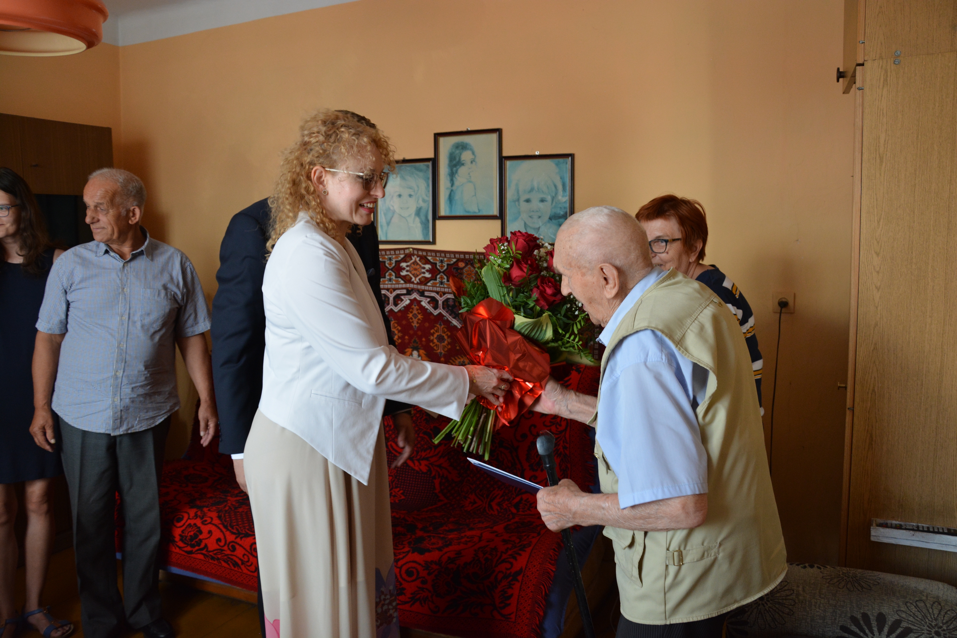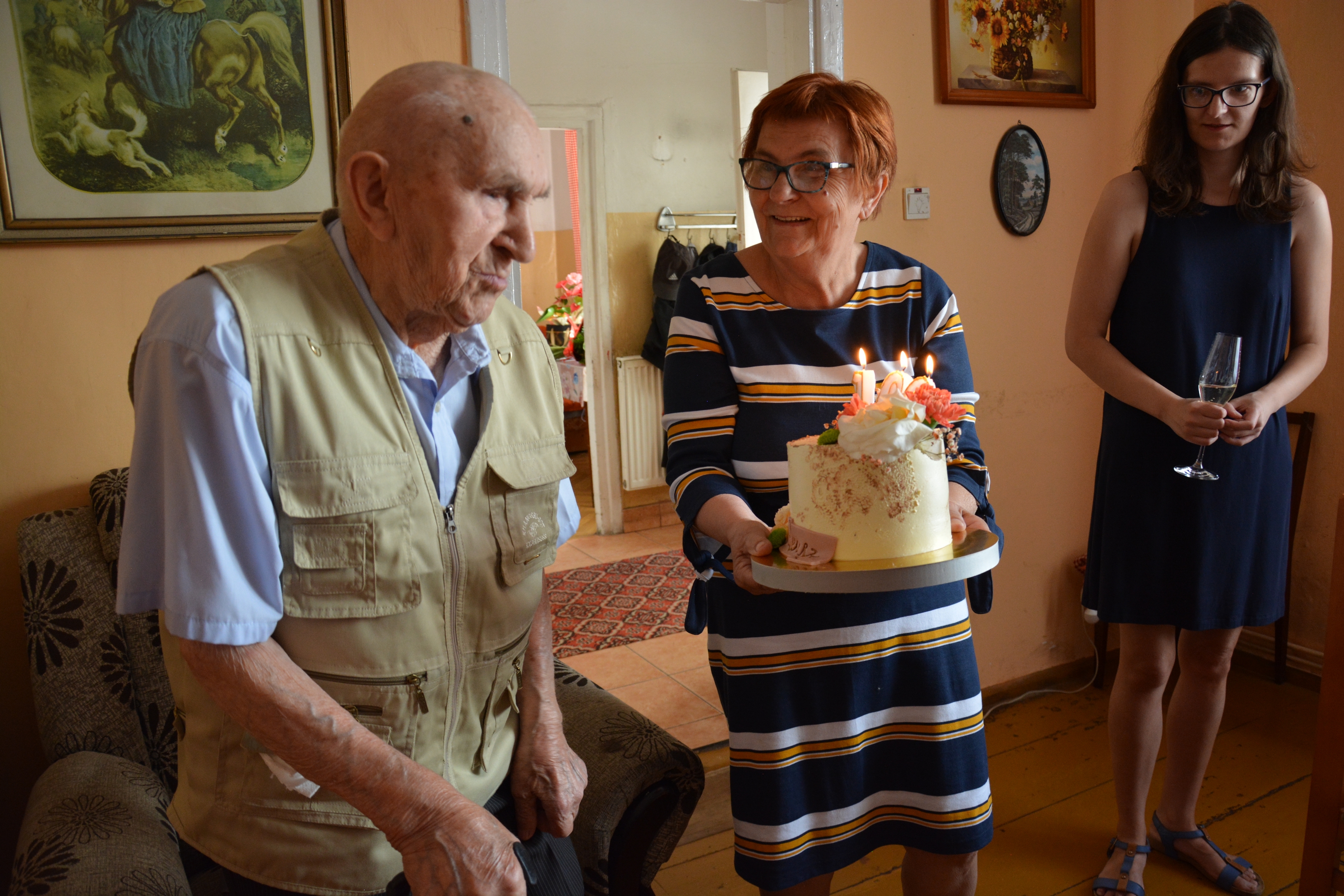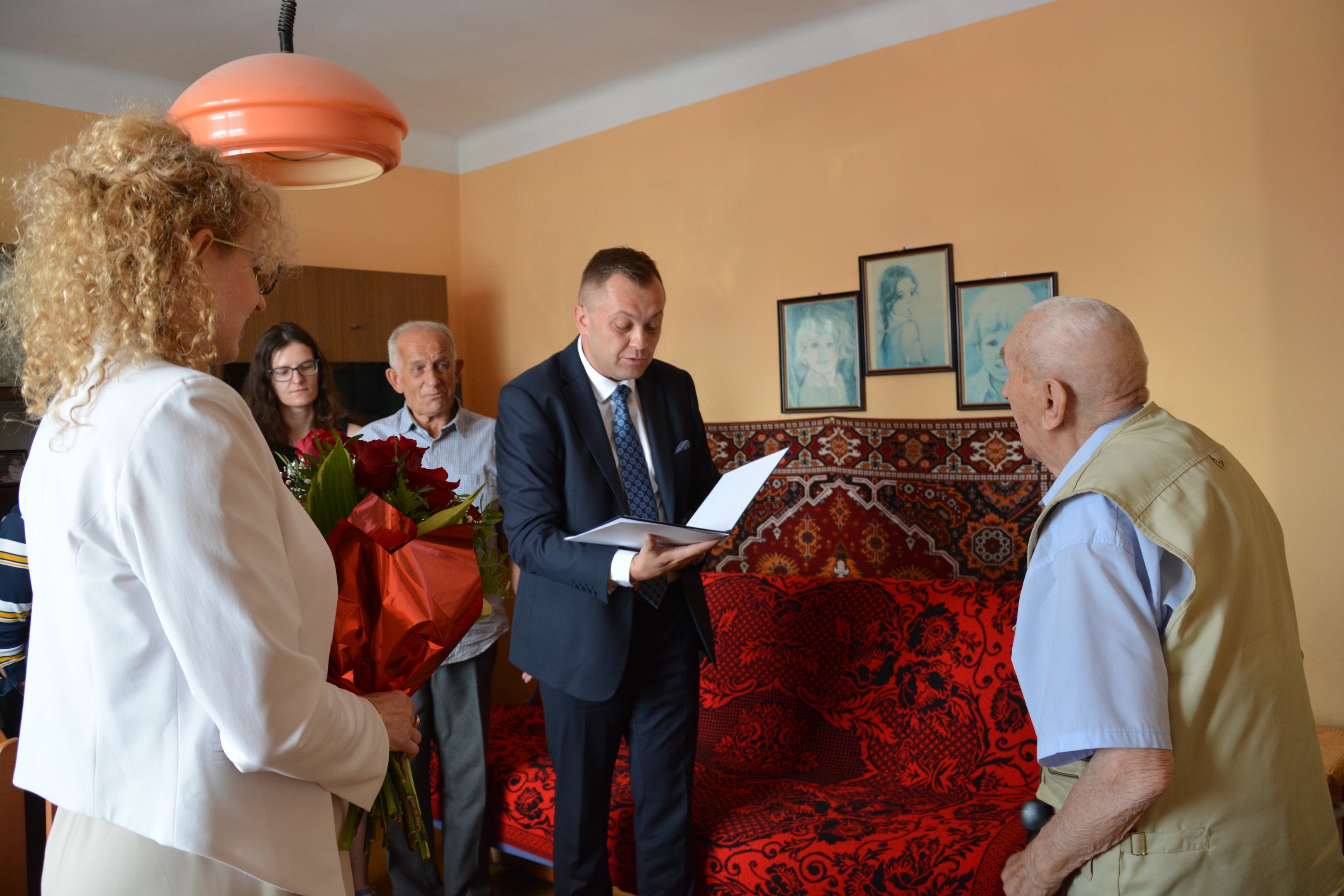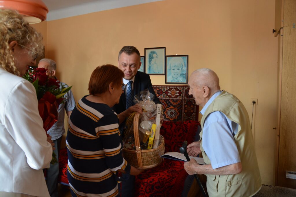 Burmistrz w imieniu własnym oraz całej społeczności gminy złożył najserdeczniejsze życzenia oraz przekazał Jubilatowi list gratulacyjny wraz z koszem upominkowym i kwiatami. Przekazał również najserdeczniejsze życzenia i gratulacje od Prezesa Rady Ministrów. Dopełnieniem tej niecodziennej uroczystości było wzniesienie toastu za zdrowie Jubilata.