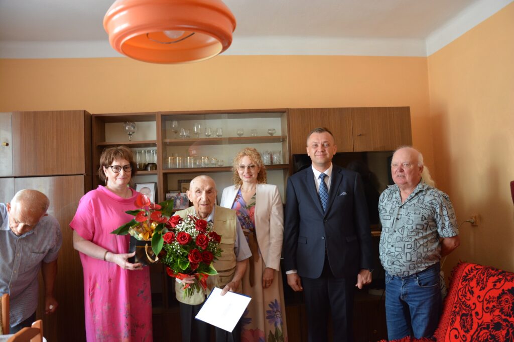 Z tej też okazji dostojnego Jubilata odwiedził Burmistrz – Paweł Grabek, zastępca kierownika Urzędu Stanu Cywilnego – Agnieszka Odorowska-Janoszczyk, radny Rady Miejskiej w Józefowie nad Wisłą – Andrzej Twarowski oraz sołtys Józefowa nad Wisłą – Jolanta Morek.