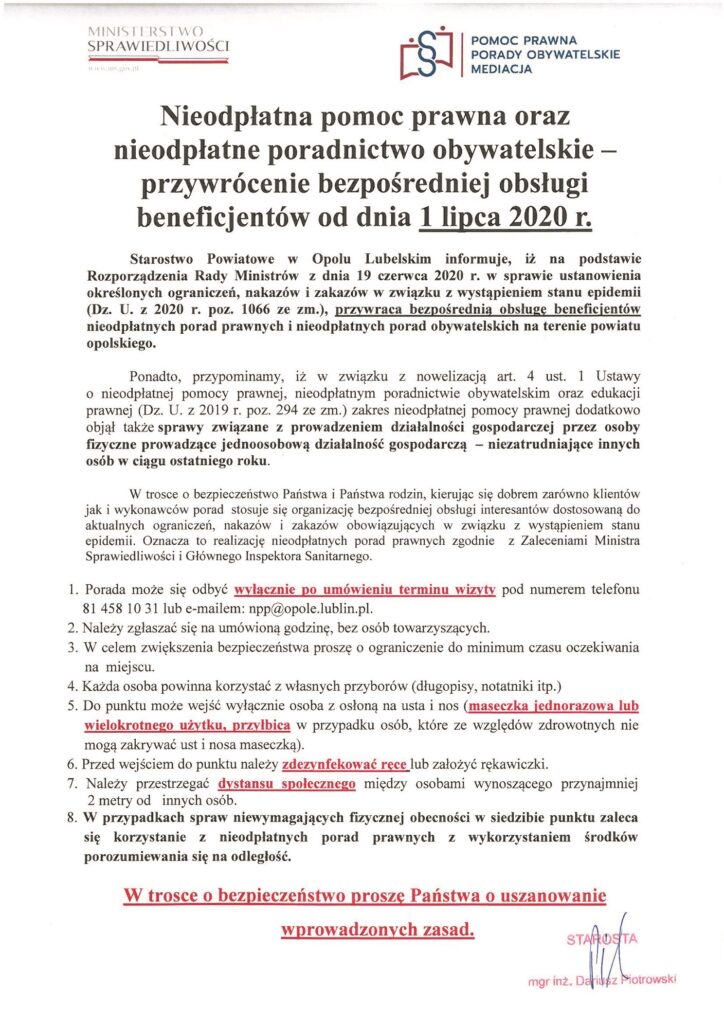 Wznowienie stacjonarnych nieodpłatnych porad prawnych