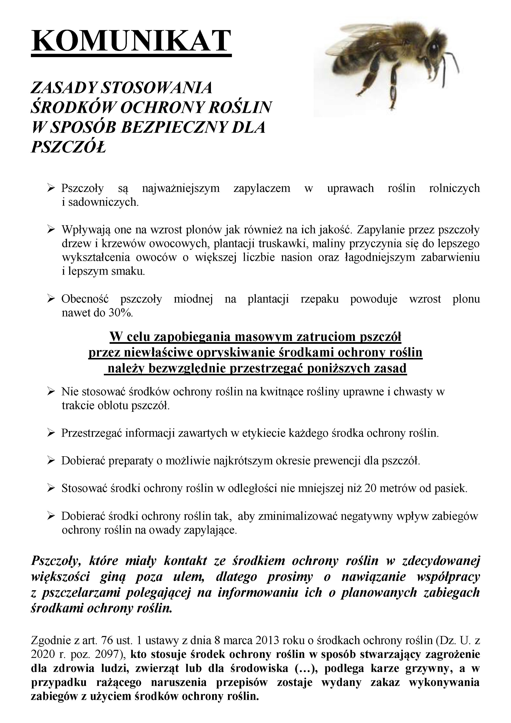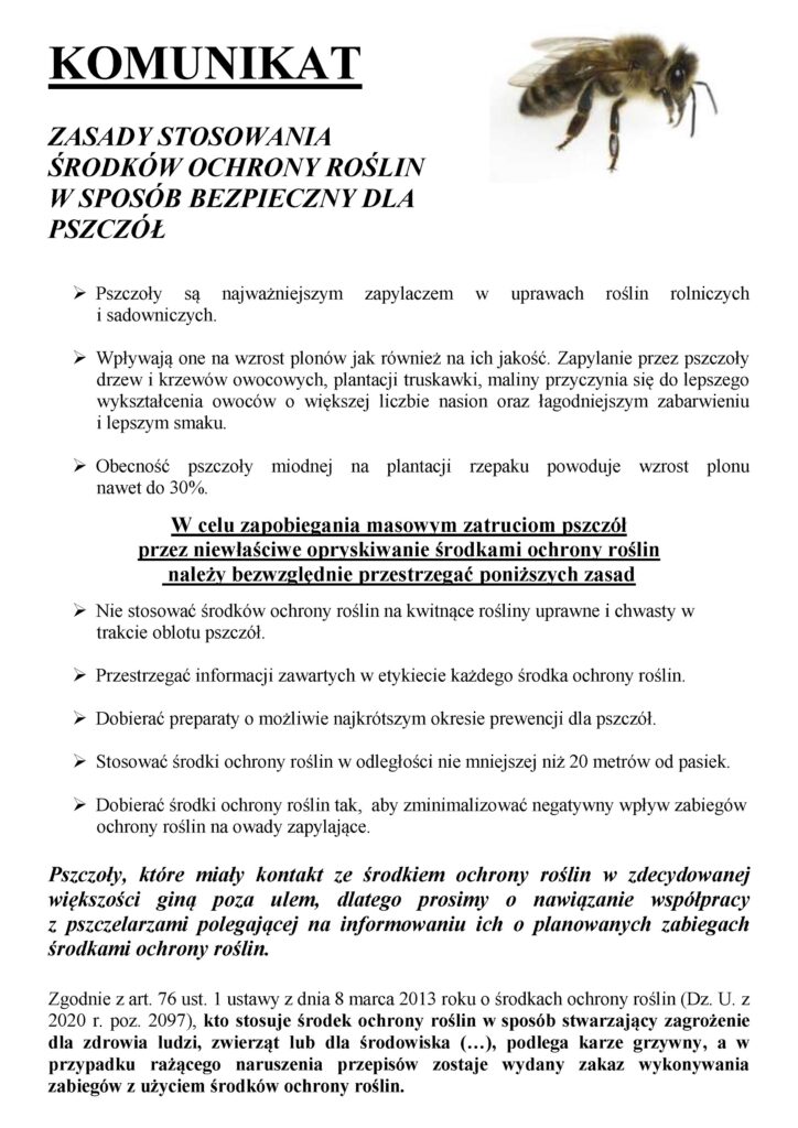 Zasady stosowania środków ochrony roślin w sposób bezpieczny dla pszczół