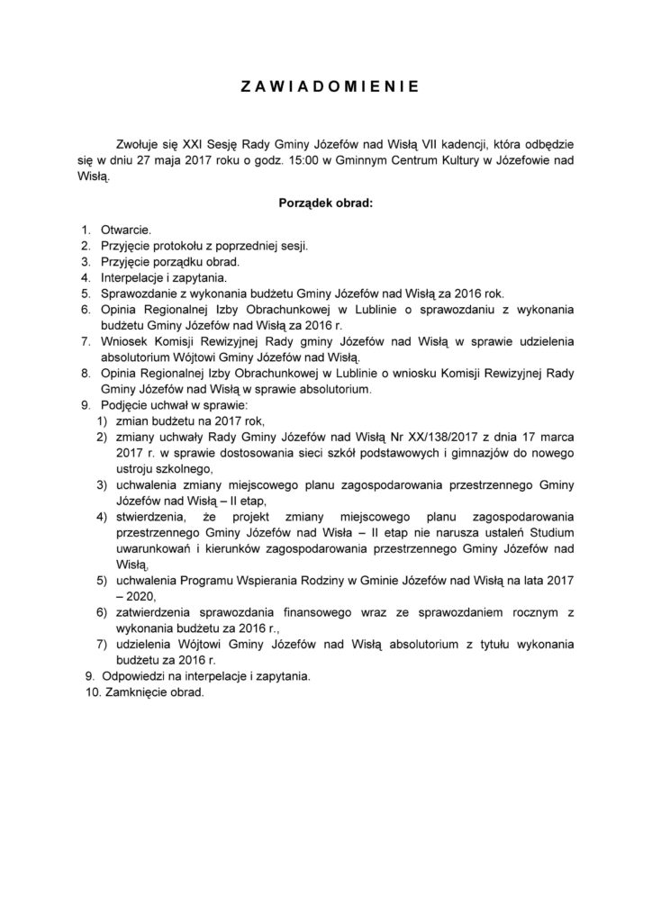 Jesteś tutaj: Strona główna / Zawiadomienie o Sesji Rady Gminy