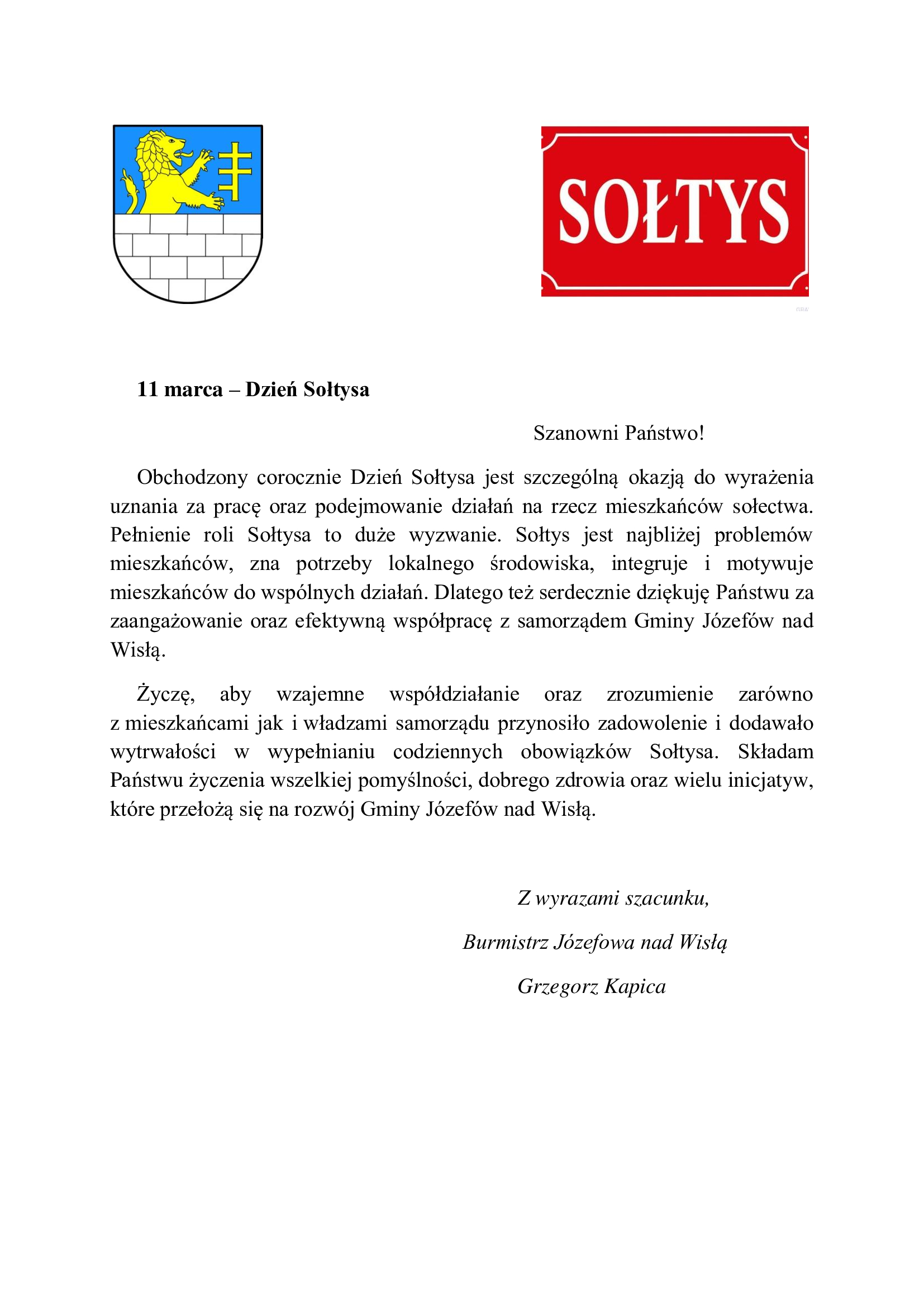 Życzenia z okazji Dnia Sołtysa